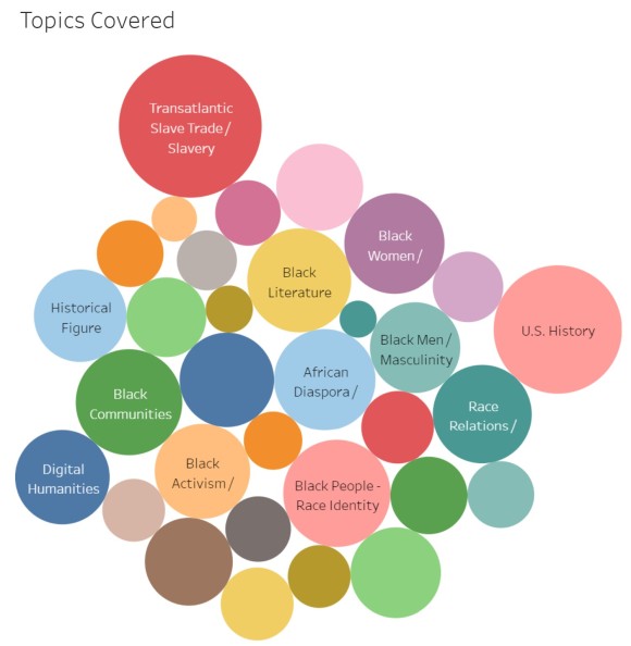 We are currently expanding our JMU-based leadership team to include broader disciplinary and geographical expertise, and together our growing team is beginning to plan the project’s next stage of development. In its current form, the map is very skewed toward projects based in the U.S., and our first next step is to research, reach out to, and include more projects from elsewhere around the globe. To build community and collaboration networks, we are also exploring programming possibilities such as inviting experts to curate themed data visualizations and project lists, a publishing platform for blog posts and data analyses, live and teleconferenced events, and more. Finally, we want to explore further how we can develop our early experiments in visualization to better understand the scope, reach, and unmet needs of Black public and digital humanities projects worldwide.
