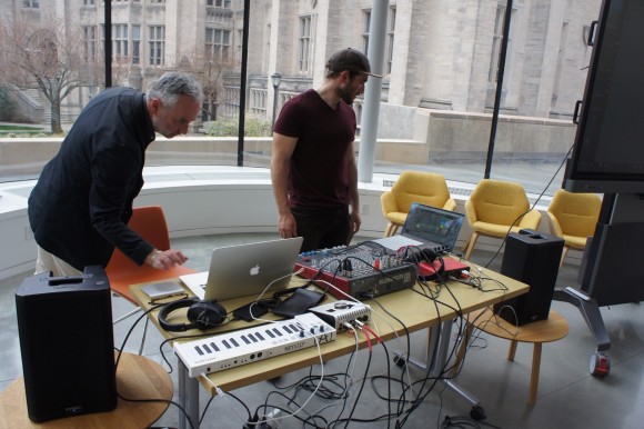 Through a robust collaboration with colleagues at Yale, we have developed a public-facing project that integrates music composition, music theory, electrical engineering, and environmental science. My collaborator Matthew Suttor is a professor in the Yale School of Drama who has been working on the intersection of musical composition and animal sounds (listen to Matthew creating a song with crying baby mice). We quickly connected and decided to collaborate given our mutual obsession with collective animal behavior and its similarities to musical theory! As I explained to Matthew, pigeons in a flock don’t want to be too far apart or too close together, and they all want to move at similar speeds. “Nature is musical; those are all rules of harmony!” Matthew excitedly said to me. We began exploring the sounds that can emerge from the collective movement and orientation of fish and pigeons. We were lucky enough to find Jonathan Koss, a PhD candidate in electric engineering at Yale, to aid us in incorporating cutting edge technology, such as mini computers and computer vision that can identify animal species by images or sounds using deep learning.