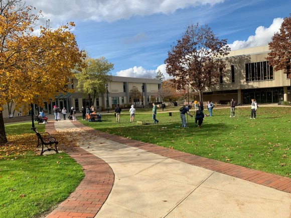 At this event, students also set up a variety of lawn games as a way to celebrate community and build connections within MCLA—and this celebration was something students felt was desperately needed as we continue to wrestle with the effects of the COVID-19 pandemic. As the campus reopened, students were hungry to connect but many were unsure of how to navigate forming those bonds. The INSCAPES event in The Quad provided that much needed opportunity to engage with one another, build those connections, and strengthen our sense of community, all through the power of place-based poetry.