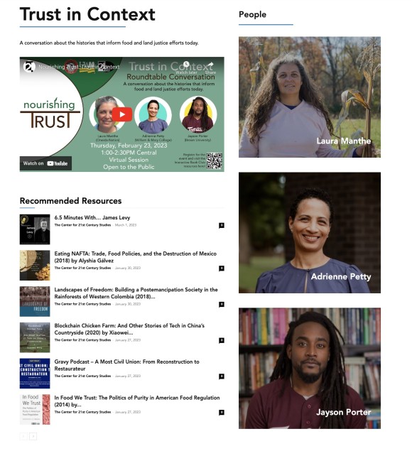 We were thrilled this year to partner with the Milwaukee Turners – a historic club committed to social justice since 1853. The Turners co-hosted the roundtables on Zoom and Facebook Live. Our partners at UWM, the Serious Play Collaboratory, broadcast the roundtable on Twitch. The audience numbers for our three roundtables on Nourishing Trust: Considering How Food and Land Connects Us quadrupled from last year when we hosted our own Zoom panels.