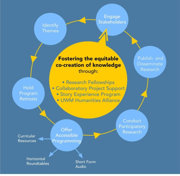 As an interdisciplinary humanities center, we are experimenting to find structures that support the co-creation of knowledge to address the pressing issues of our time. We don’t know what works yet. But we have built a responsive, asset-based process (building on existing strengths) to guide us as we learn, reflect, and respond.