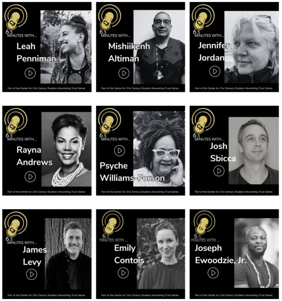 We decided to break open our traditional 2-day “conference” format with a series of events and materials that unfolded over the course of a whole year. Our programming would begin with a series of brief, bi-weekly podcasts—6.5 minutes with C21—interviews with emerging (students or early career) and established academics and community experts on a given topic.