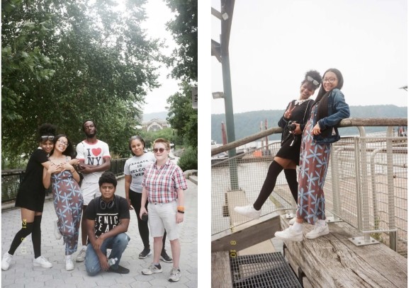 As the world returned to a “new normal,” I aimed to expand these opportunities in the second year of my fellowship. The first project grew out of a community lecture series from the year before. Entitled “Public Art in Yonkers,” the panel discussion featured Yonkers artists constructing large-scale murals, fixing sidewalk cracks with mosaics, and a community quilt project. To share their work with a larger community, I curated the exhibition Rooted: A Community Archive Project, which features work by artists Evan Bishop, Katori Walker, Haifa Bint-Kadi, and Sola Olosunde. While the first three artists are Yonkers-based, I aimed to expand the notion of community by including the photography of Sola Olosunde. He is a Brooklyn-based photographer and captures urban life in New York City. Sola led a workshop with local Yonkers teens and Sarah Lawrence students teaching them how to use professional cameras and canvassing the downtown area to capture images of the rapidly gentrifying waterfront. Their collaborative work was featured in the exhibition. To support these findings, Sarah Lawrence students used the Yonkers Public Library Digital Archives to chart the evolution of the downtown area using photographs, maps, newspaper clippings, and census data. These archival materials were arranged underneath the photos.