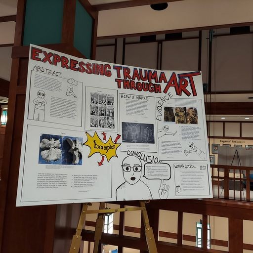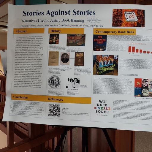 At the end of the semester, enrolled students presented their collaborative research to articulate why Maus matters. We held a celebratory yet somber poster event in our campus library, a fitting space in which to explore the imaginative power of literature and the chilling effects of censorship.