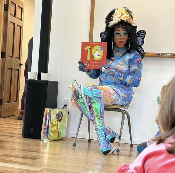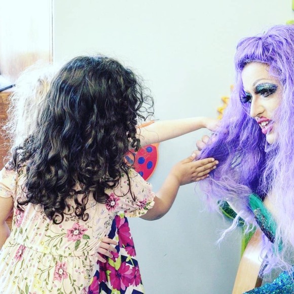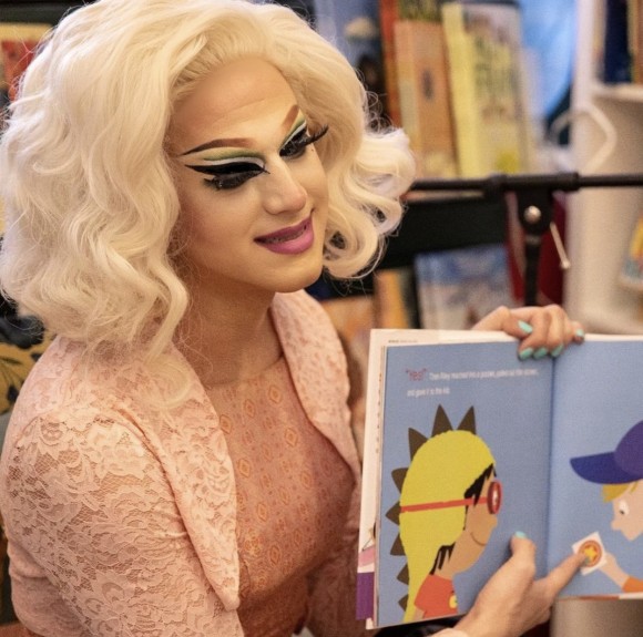 While wearing multiple hats (storyteller, author, board member, professor) provides plenty of opportunities for interdisciplinary work, Kornstein said that ensuring that this work is legible to a variety of audiences is something that has become central to how they operate in each of these spaces. “There’s always a background thought of how do I make drag legible to children? How do we speak using the vocabularies and grammars of drag, but in a way that’s age appropriate and that children will appreciate?” Kornstein explained. “I think a lot as a performer about things like what kinds of humor children will understand and respond to, versus what's more typical at an adult drag show.” This element of the work that DSH does is especially important in terms of trying to forge the best connections possible between storytellers and their young audiences. To capture the creative spirits of as many children as possible, a typical storytelling session might include reading from three or four books, usually with LGBTQ+ themes, as well as singing songs, doing some group movement, and oftentimes craft activities such as coloring or face-painting. Depending on the strengths of the performers in each individual chapter, storytellers sometimes also present child-friendly lip-sync performances to their young audiences.
